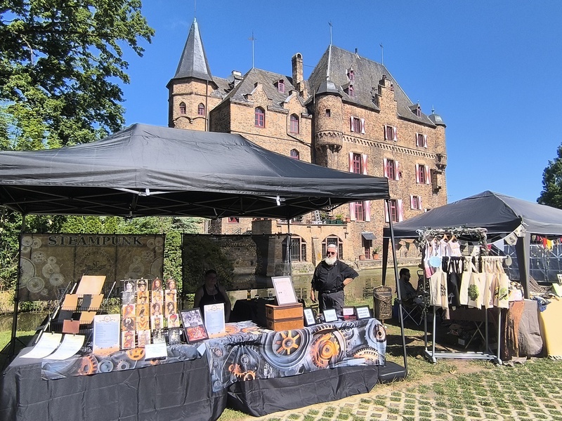 Dunkelbuntes Indoor-Marktgeschehen, Biergarten, Bühnenprogramm, Lesungen im Wappensaal - eine der schönsten Wasserburgen Europas lädt ein! Gothic, Fantasy, Mittelalter, Steampunk, uvm.