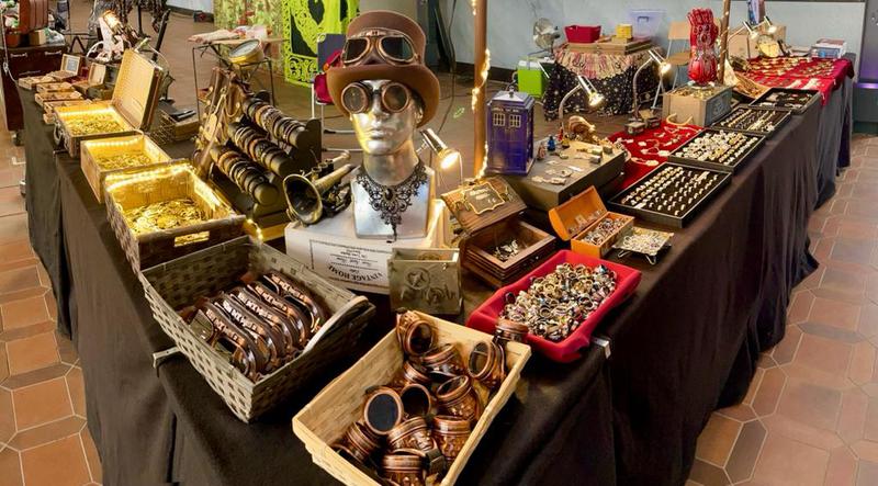 Mit dabei: Steampunk-Artefakte-Ausstellung mit Spiele-Parcours (4 Spiele, wie "heißer Draht" und "Zahnrad-Wand") für große und kleine AbenteurerInnen.