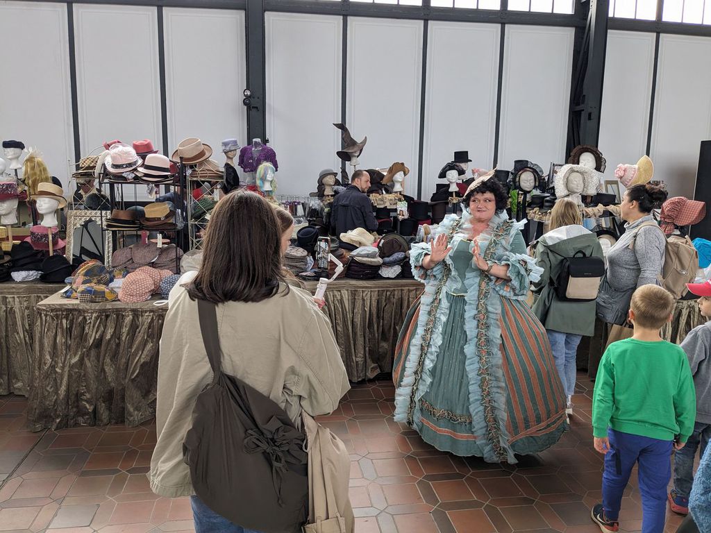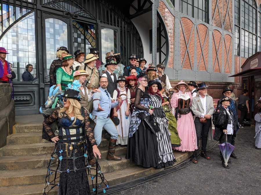 Steampunk gewandete Herrschaften präsentieren sich dem staunenden Publikum.