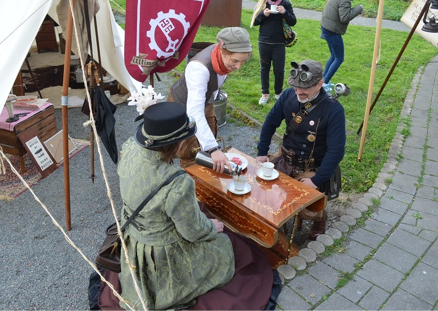 hat. Zudem sind die noblen Herren mit mobilen Steampunk Fahrzeugen auf dem Once-Gelände unterwegs.